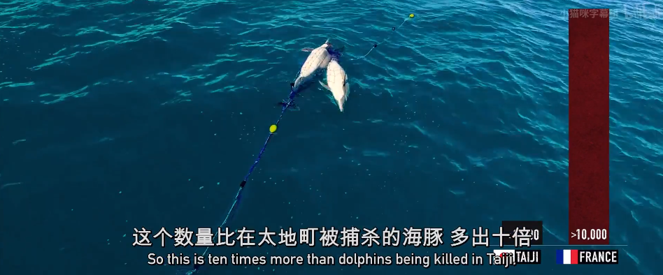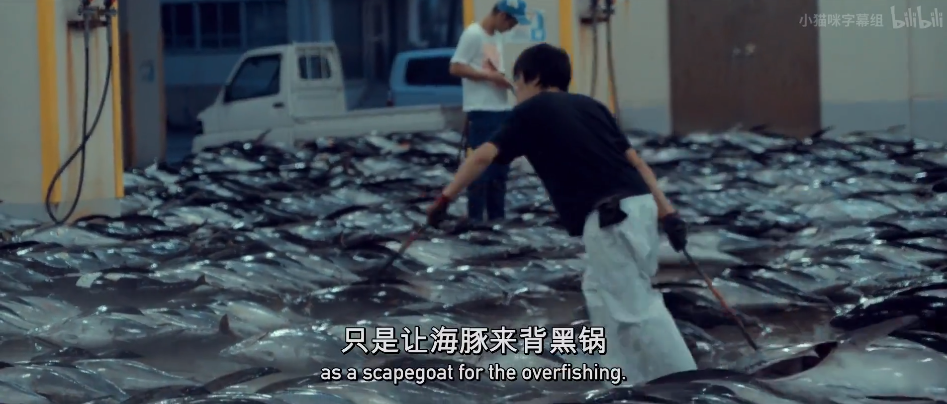 片中,关于为何屠杀海豚,渔民的回答是防止海豚吃掉更多的鱼。