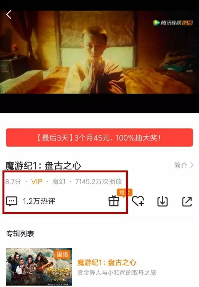 自从3月17日在腾讯视频独家上映至今,《魔游纪1:盘古之心》的专辑播放总量突破7149万,弹幕数量突破50万,评论数量超过1.2万条。在独播平台腾讯视频上的评分高达8.7分。对于一部仅对vip开放的网络电影来讲,这个流量与互动量不容小觑。