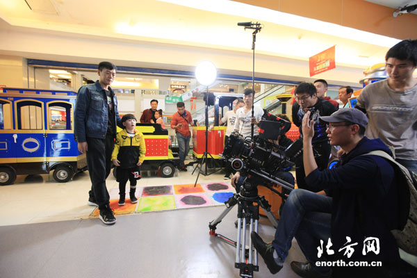 10月23日,剧组在位于西青道欧亚达商业广场内景拍摄时,记者看到申乾与男一号王品一的对手戏,小申乾的表演十分自然,也十分可爱。“和他一起搭戏的感觉很特别,他的戏十分自然,让我也感到不像是在拍戏,就像真的生活一样。”女一号马赫遥对记者说。
