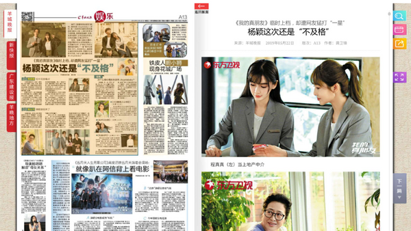 羊城晚报对此发文评价:《《我的真朋友》临时上档,却遭网友猛打“一星” 杨颖这次还是“不及格”》。