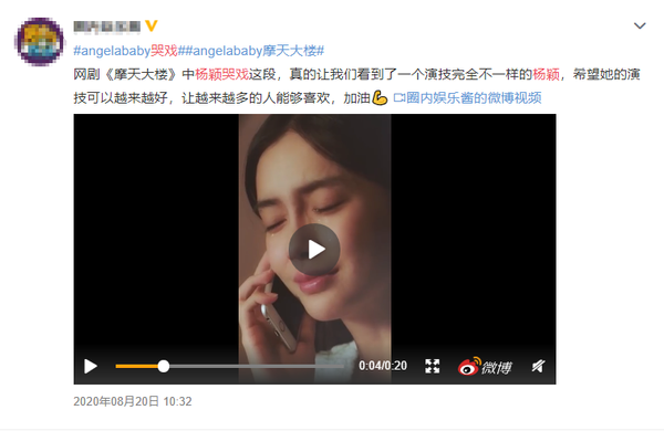 尽管质量上佳,但《摩天大楼》的热度是真不高,在同档期的所有网播剧中连前三都挤不进去。而杨颖的演技好不容易超常发挥了一次,没有热度?那就造就热度。