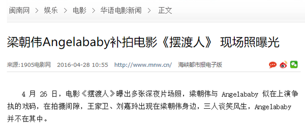 因为监制“墨镜王”王家卫对《摆渡人》已拍摄的素材不满意,要求杨颖等主创在2016年3月补拍该片。