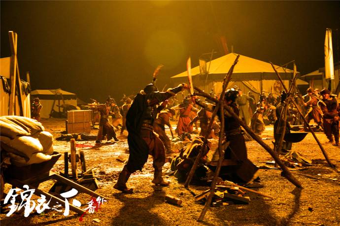 除了动作出彩,服道化也堪称电影巨制的配置:如飞鱼服大师设计、精工细作,一件价值数万。同时,每一件大小道具都做工精良,大的战争动作场面更是不惜成本。最夸张的是,有一场戏消耗几卡车道具,让不少见惯大场面的演员都有些“痛心”。