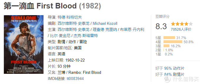 史泰龙的发家系列,枪林弹雨、血肉横飞,兰博的形象也因此深入人心。