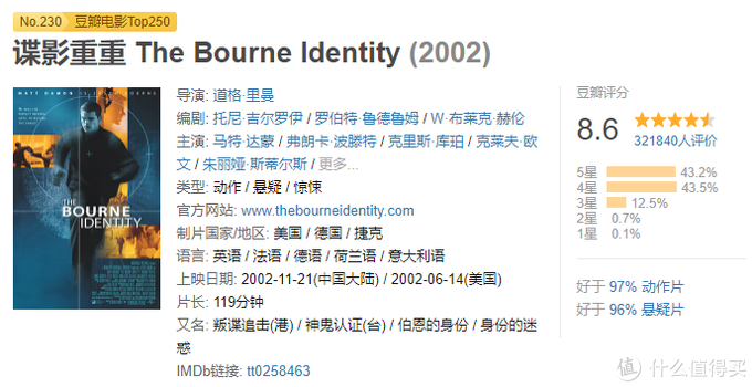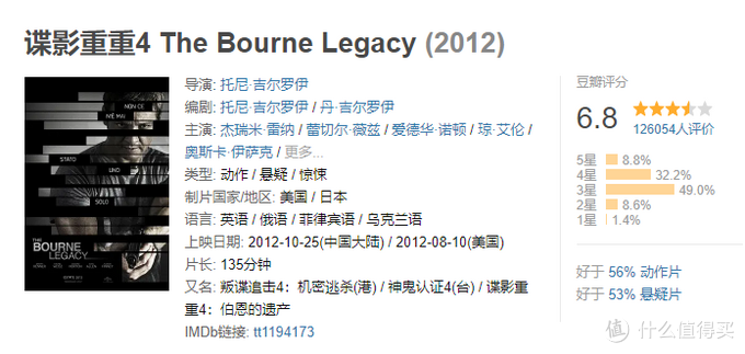 第四部的主角则并非波恩(马特?戴蒙 饰),但还是同一条故事主线,牵扯出一个更大的迷局。这一部的豆瓣评分并不高,值友6.8。