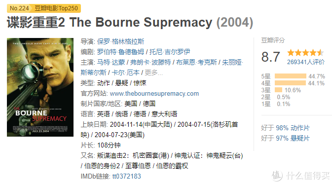 2016年上映的谍影重重5的剧情稍微更迷惑一些,反映在豆瓣评分上就是波恩(马特?戴蒙 饰)掉下了8分,只有7.4分。谍影重重这个系列可以说是把清除特工——>特工反击拍的彻彻底底。