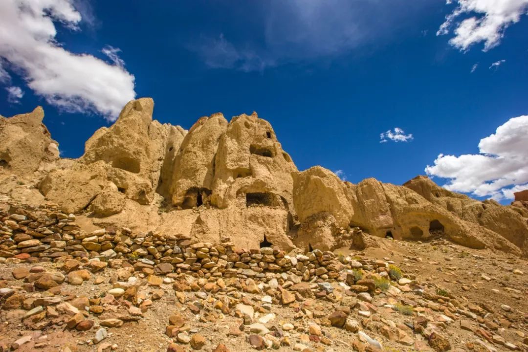 札达土林的砂岩具有和黄土高原上黄土相同的性质,可以很方便地在上面打洞、但又不会倒塌。这样的地势易守难攻,逃亡的吐蕃王族后裔在其上打造了庞大复杂的洞穴群。