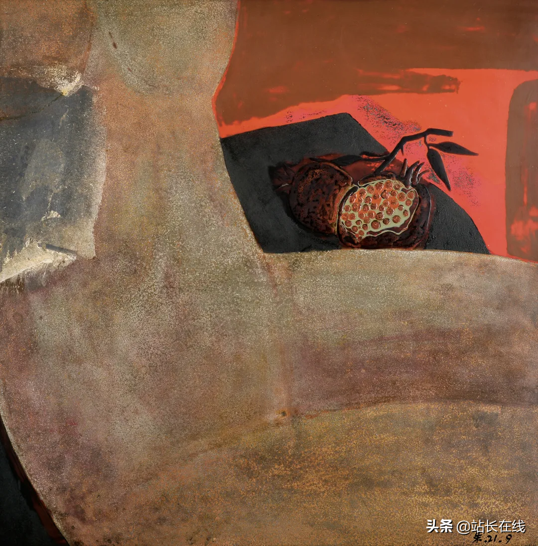 漆艺在中国有近八千年的历史,最初是在器物表面以图绘的形式呈现,而漆画正是由此发展而来。和传统的漆画相比,朱莉燕的作品更为抽象,注重情感的表达,既有山野荒漠的苍茫豁达,也有女性若花般的细腻朦胧,是“一种东方性与当代性的结合”。