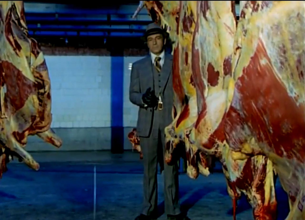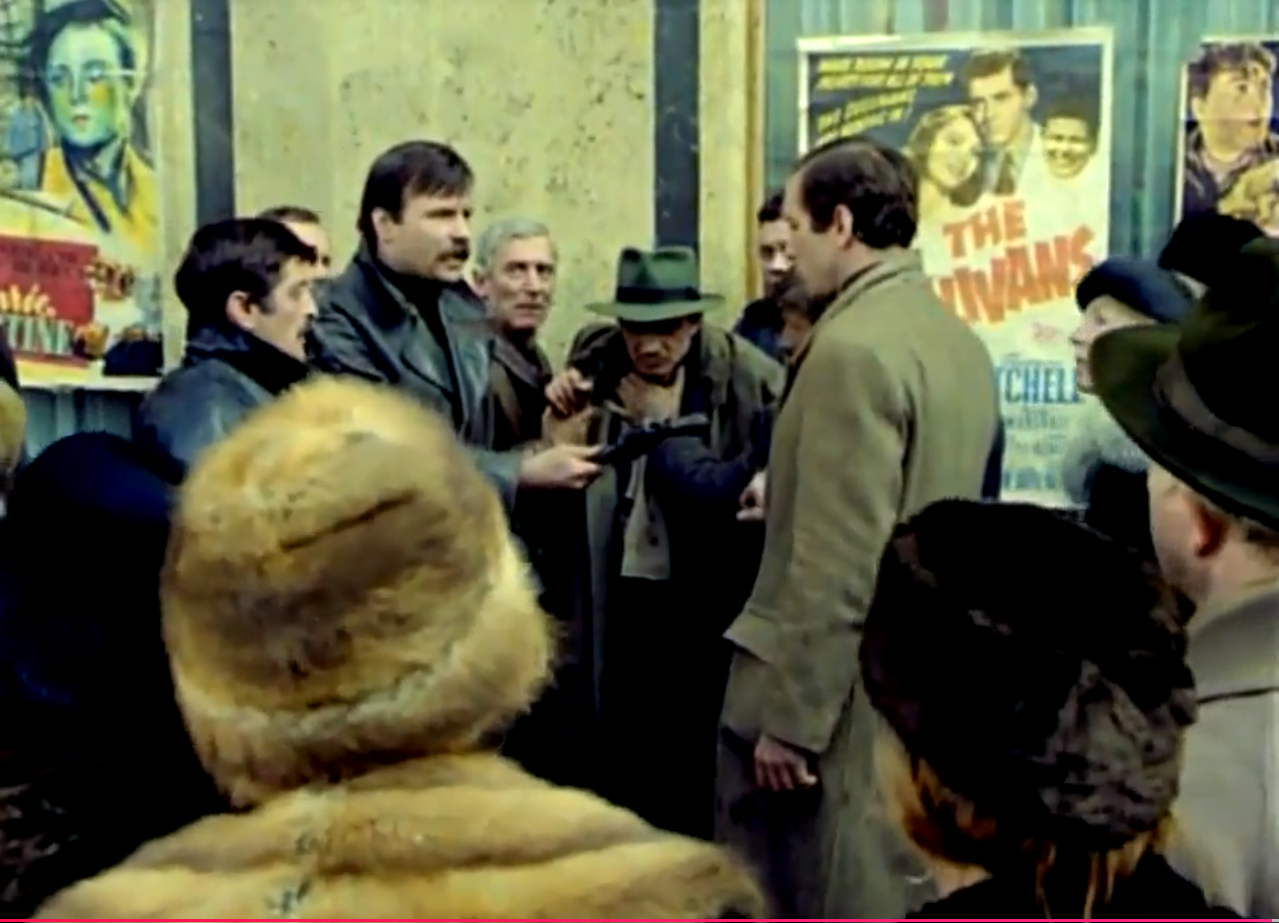我们看到,电影里,珀尔武也安排了莫多万去执行几项任务。当铁卫军暴动发起的时候,罗共负责人叫莫多万去救出一个医生,这样,莫多万便介入到暴动之夜发生的城市骚乱情境中,而当他打听到所救人员被巴拉班带到屠宰场之后,电影里的一场高潮场景出现了,这就是电影镜头里将挂着半片猪肉的屠宰场仓库,转化成了枪战的战壕与阵地。