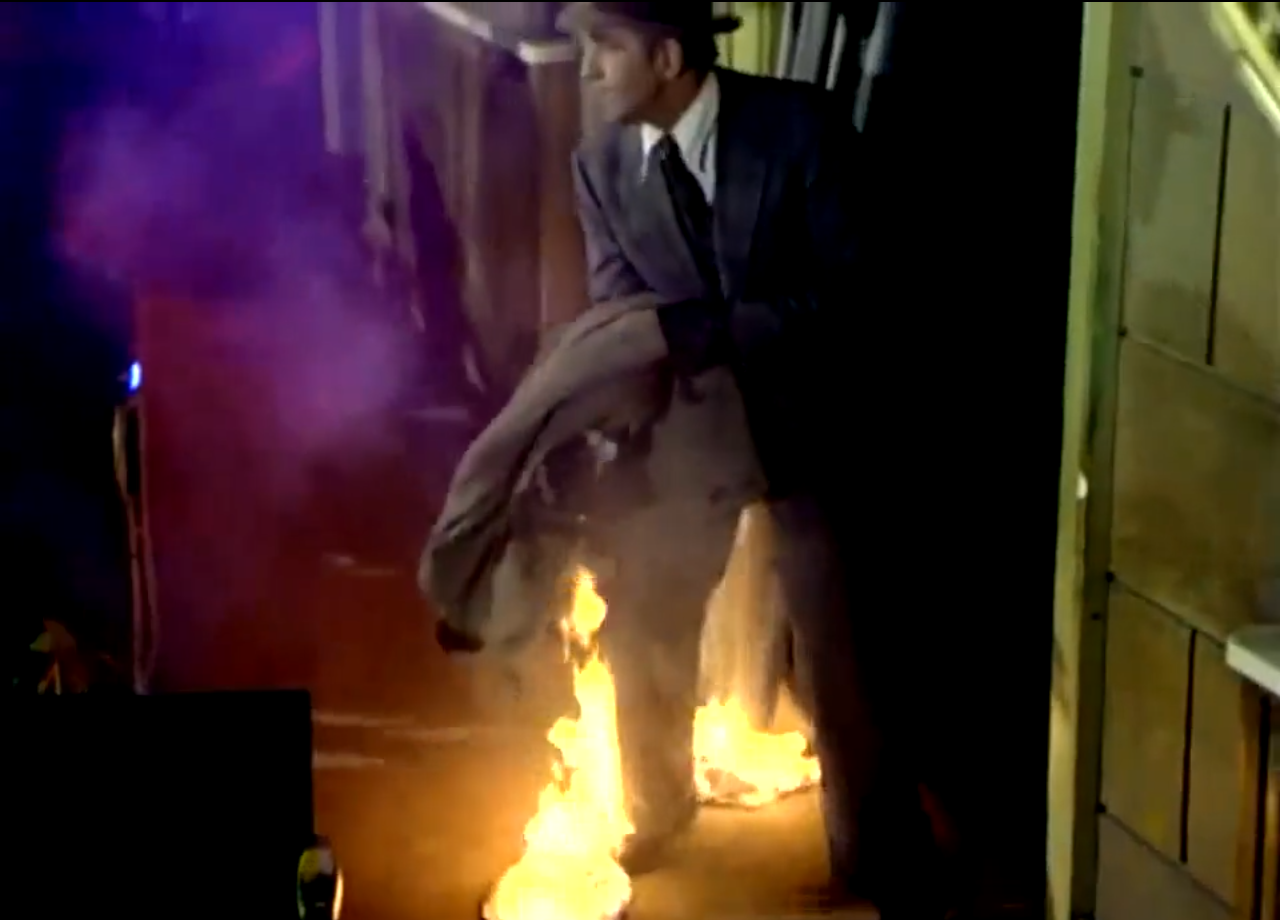 他这一行动,显然冒犯了纳粹德国的利益。正当莫多万单枪匹马、手执烈性炸药、逼迫铁卫军头目束手就擒的时候,他接到了德国冲锋队头目盖斯勒的电话,告诉他的儿子关在外面的警车上。莫多万救子心切,奔向警车,但是半途发生了警车爆炸,电影也在这里定格,给人留下一个电影人物命运扑朔迷离的迷津。