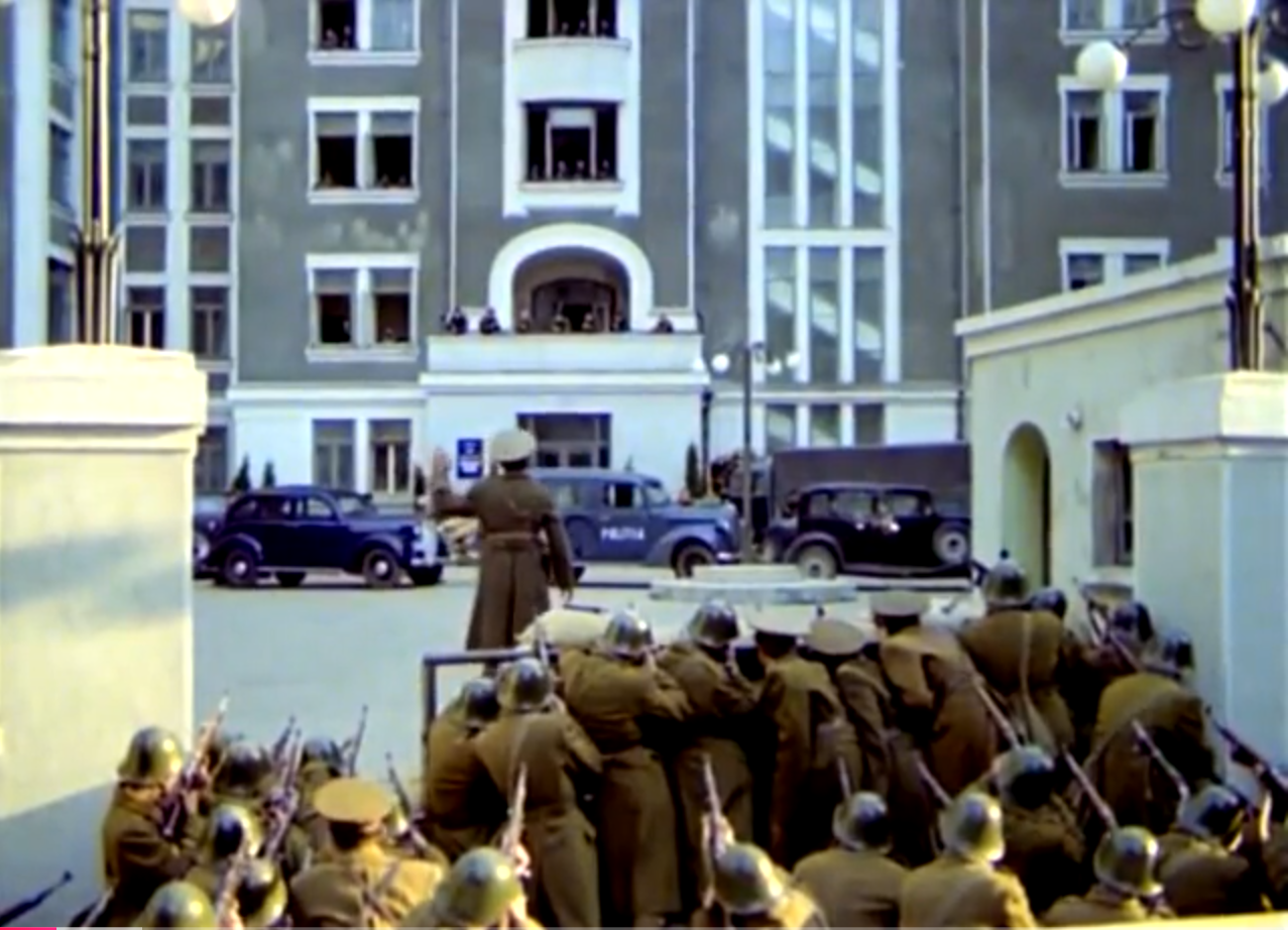 片中并没有出现安东内斯库本人,但是电话里可以听到他的声音,可见,安东内斯库一直指挥着针对“铁卫军”的具体行动。