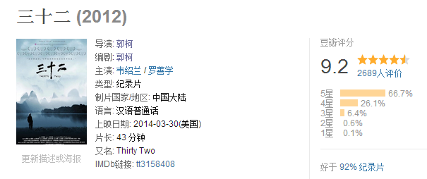 于是导演郭柯在2012年就拍了《三十二》这部纪录片(主角就是92岁的韦绍兰),揭开“慰安妇”这个敏感词以及慰安妇背后不为人知的苦痛和辛酸。