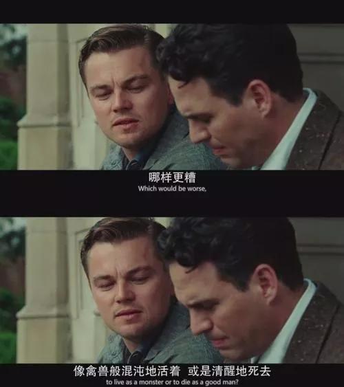莱昂纳多最后一句话是“to live as a monster or to die as a good man."这句话起着很关键的作用。让我们来分析一下。