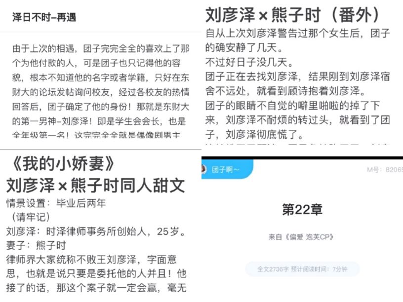 鲁照华饰演的团子(熊子时)角色圈粉不断,她和对手演员陈泽在这部剧里贡献了无数的名场面,被剪辑为短视频在各个平台传播,各种将两人p图,被续写各种类型的同人文章,其中一位叫“薄荷烟的甜-”网友写的同人文,长度完全可以拍一个续集了,这就是非常受观众欢迎的“泡芙cp”。