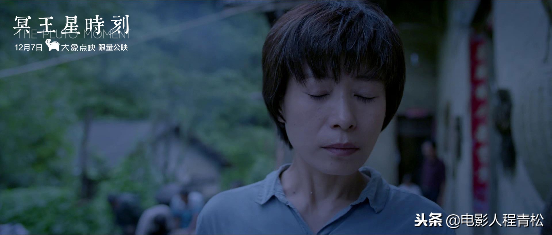 通常,一部电影最先让吸睛的外观因素是其故事情节,而在章明的电影中,故事的轮廓往往简化为线条大纲,即使在梗概中能窥见戏剧化的事件,但最终都止步、稀释于影像之中。《冥王星时刻》从情节的角度看,基本可算“其实并没有什么故事”,而是以接近公路片的范式,将场景置入神农架林区,依旧是以往重庆、湖北、四川交界处的地缘风貌设定。艺术片导演王准带领着制片人丁宏敏、演员白金铂和摄影度春,前往深山采风,主要目的是采集当地丧歌《黑暗传》的素材,由当地向导老罗陪同。途中除了遇到几个山民、几间废弃的屋子,几乎波澜不惊,直至后三分之一处寄居一村民家中,视角逐渐移向一个名叫春苔的寡妇,在万千暗潮涌动中,四人走出山林,望见山下灯火闪耀,外观表象虽未发生变化,内心却已“轻舟已过万重山”。