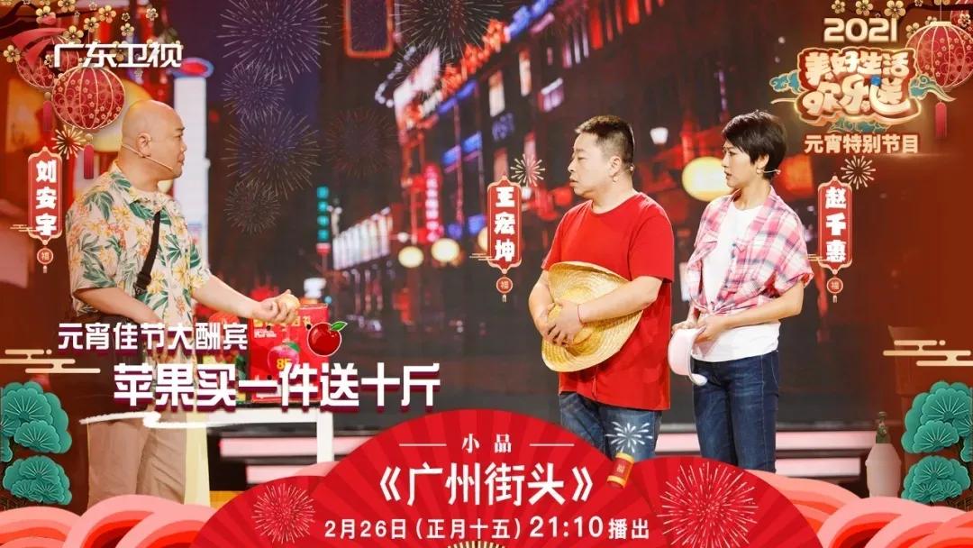 王宏坤、赵千慧、刘安宇则玩转《广州街头》,热情好客的水果摊老板上演趣味商业竞争;著名笑星杨建伟携手驻村书记吴海洋,将扶贫工作中一个“因懒致贫”的真实故事搬上喜剧舞台。