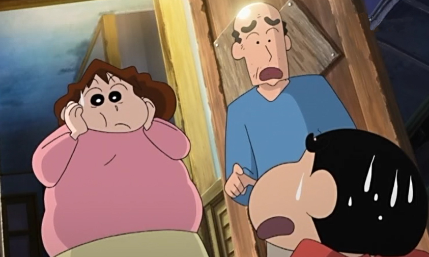 还记得那个喜欢买很多减肥食品放在二楼的柜子里,总是喜欢给小新买便宜衣服自己却买高级豪华的衣服的野原美伢吗,在未来,小新说的三层肥肉已经变成了现实,野原美伢没有注意身材管理已经变了她曾经最不希望自己变成的样子。而小新的爸爸野原广志,也变成了一个谢顶的老年人(不过这个头真的是bulingbuling的闪耀)。