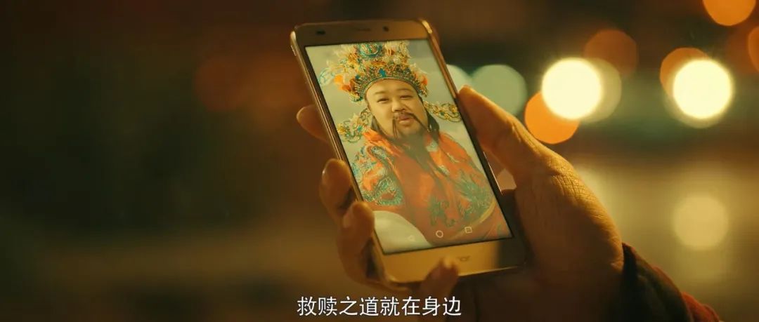 电影一开场,刘頔饰演的房产中介王嘉诚不小心踩坏了财神爷的鸿运罗盘,破了财神爷的法力,他自己也与虚弱的财神爷深度绑定。