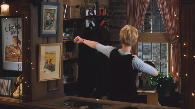 之后,她去了一趟让她失业的fox书店,来到了儿童书区域,帮助一位营业员找出了顾客想要的书籍。