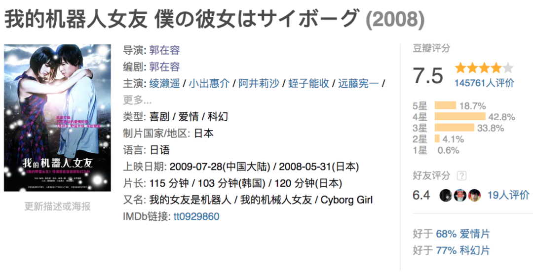 在剧情基本一样的情况下,包贝尔版的《机器人女友》居然比绫濑遥的日版,在豆瓣上低了整整4分!