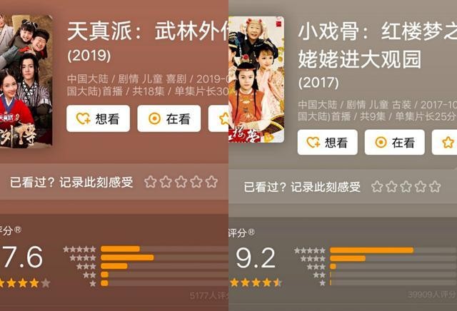 第一部天真派影片应该就是2017年的小戏骨《红楼梦》,这部影片播出后,受到了不错的口碑,而且在豆瓣上的评分可以说超越了很多老戏骨,至今这部影片豆瓣评分依然高达9.2分,因此之后掀起了模仿潮。