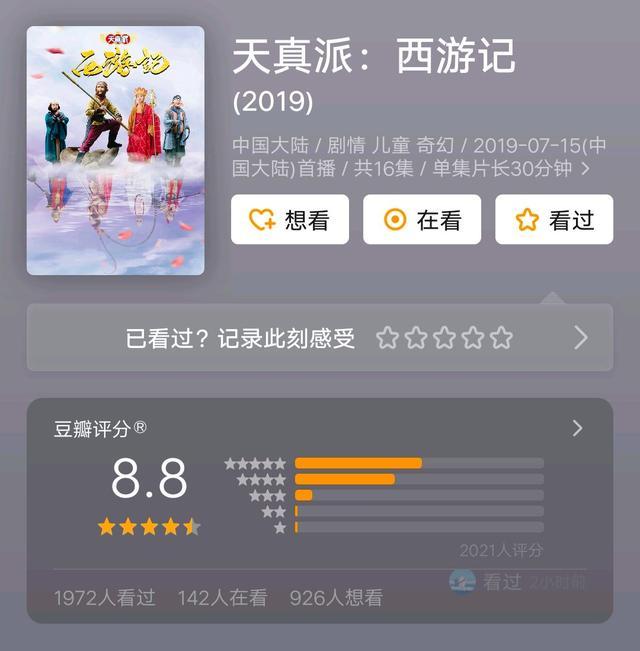 这三部影片虽然都是由小孩出演,虽然比不过最经典版本,但与其他翻拍相比评分高了不少。特别是《西游记》,作为我国的四大名著之一,在86版《西游记》播出后,多位导演翻拍过,不过相比豆瓣评分,都没有天真派《西游记》评分高。