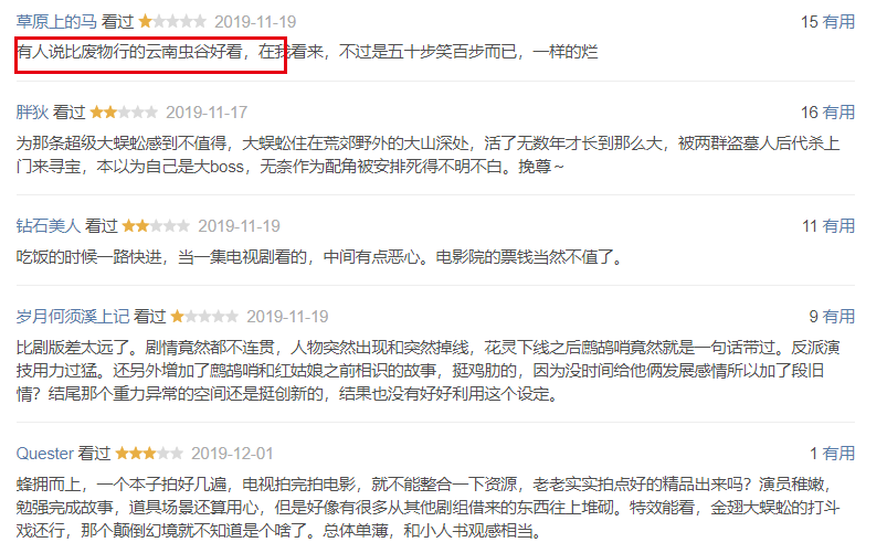 一星率41.7%,《云南虫谷》躺枪。