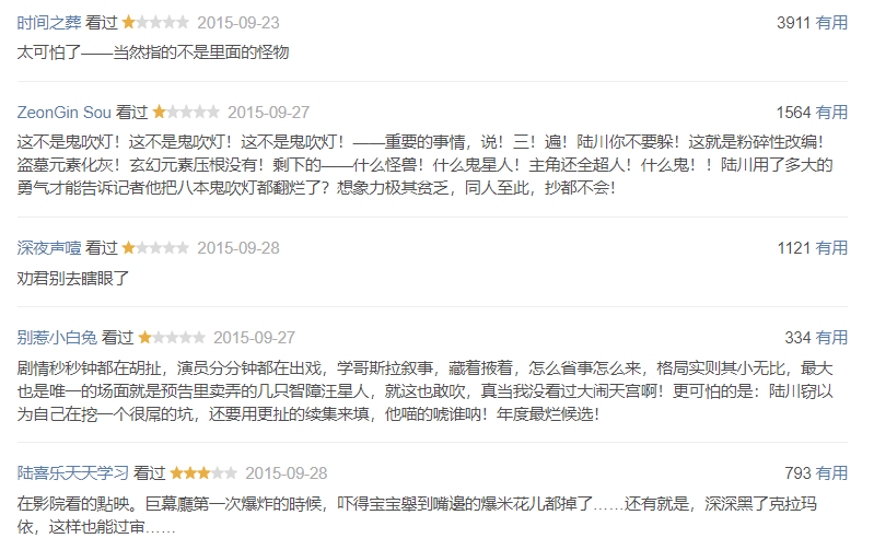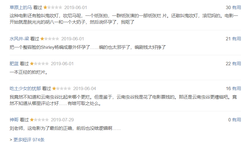 一星率15%,负面比例已经大幅降低了,猫眼口碑终于破6分了。