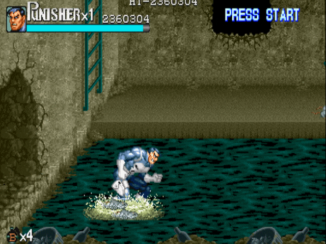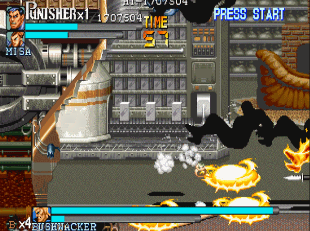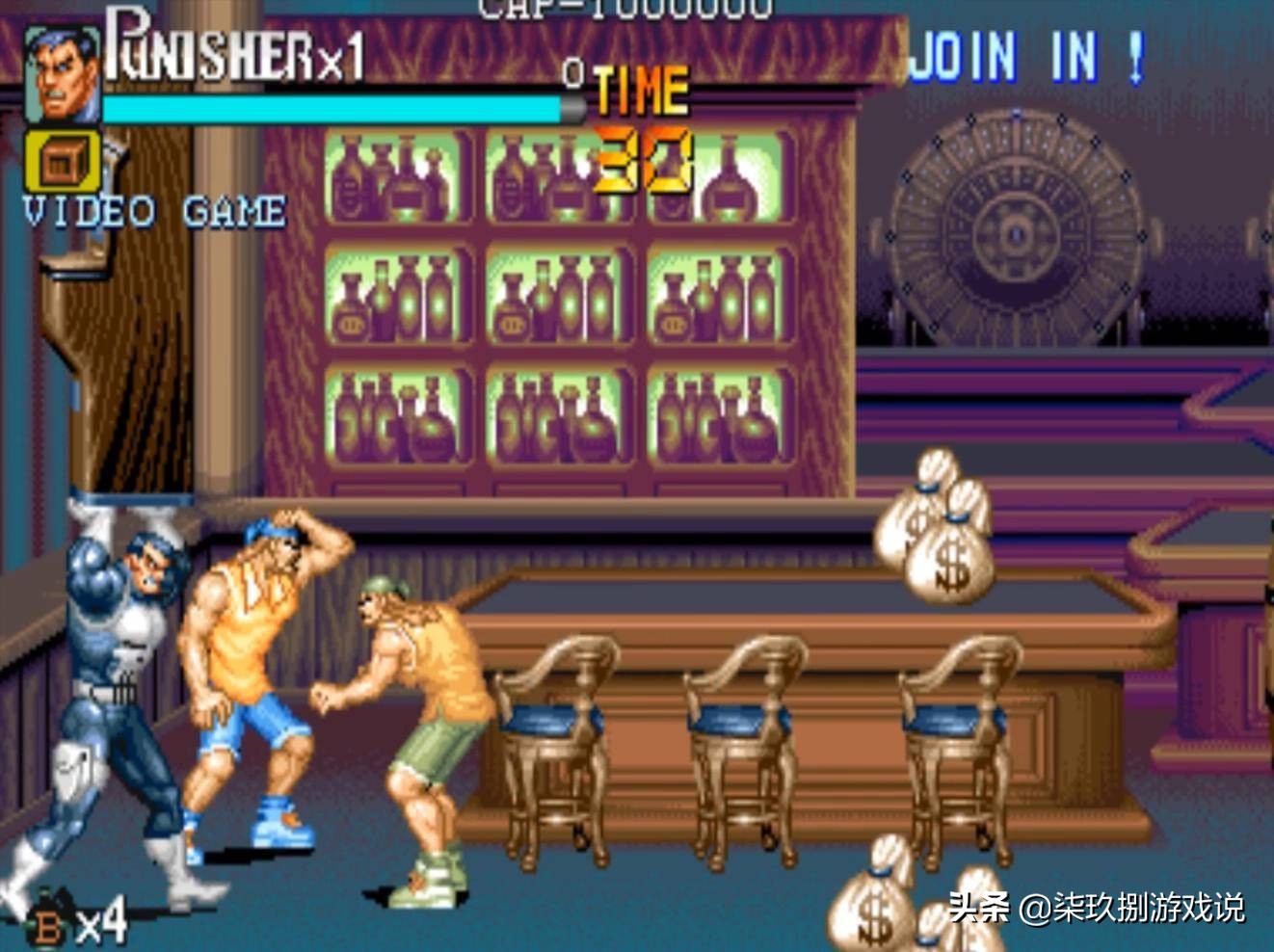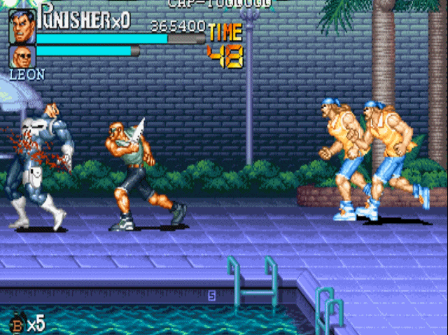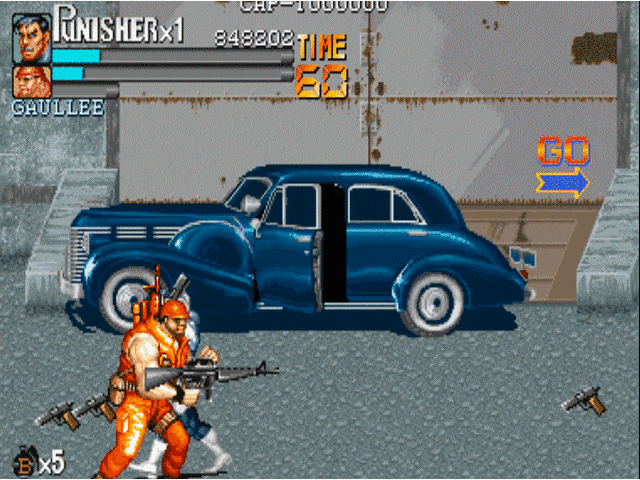 说到街机上的横版动作游戏,就不得不提到capcom的大名。诸如我们熟悉的《圆桌骑士》《恐龙快打》《吞食天地》和《快打旋风》均是出自这家公司。当然,下面我们要说的《惩罚者》也不例外,可以说在90年代中capcom在街机上推出的横版动作游戏,几乎成为了这一类游戏的代名词。1993年,capcom根据漫威同名漫画改编的游戏《惩罚者》上市,爽快的打击感与武器的多样性,使得该作推出后就受到了广大玩家的好评。游戏的操作方式继承了“先辈”(1989年推出的《快打旋风》)优良血统的同时,更是追加了极具特色的机制设定。