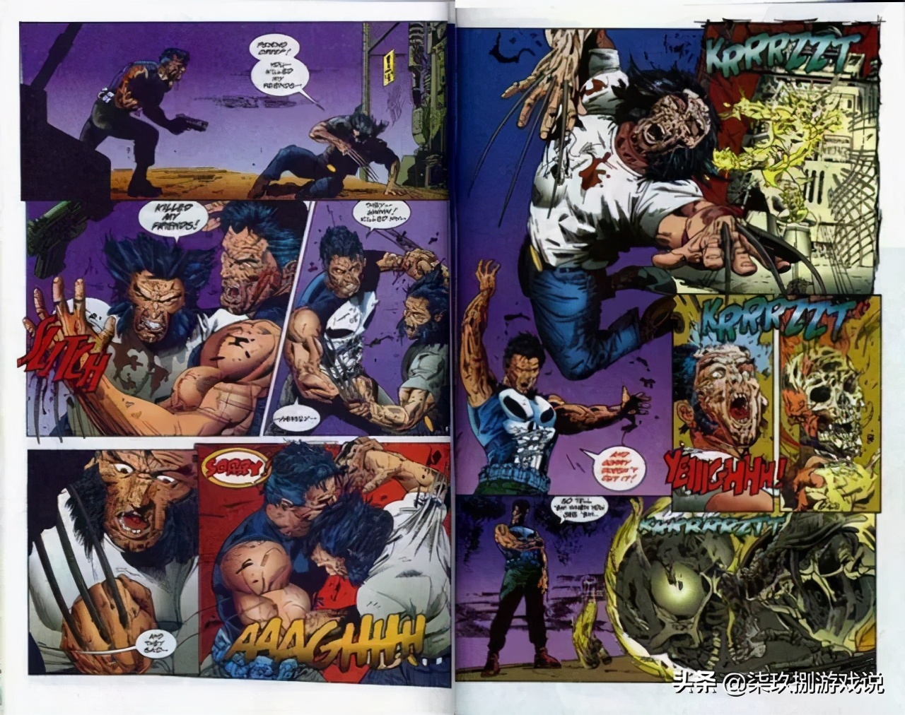 没有任何的超能力,根本无法与钢铁侠、蝙蝠侠媲美的黑科技装备,“惩罚者”就是一个平凡到不能再平凡的普通人,但你如果认为他没有任何的战斗力或是只能像游戏和影视作品中,同黑恶势力交锋,那可就大错特错。在漫威画师的笔下,这位特立独行的“超级英雄”就曾只身以一己之力屠光了一个漫威的平行宇宙。《惩罚者屠杀漫威宇宙》(punisher kills the marvel universe)是1995年出版的漫画由garth ennis编剧,讲述了“惩罚者”杀光漫威英雄最后饮弹自尽的故事。