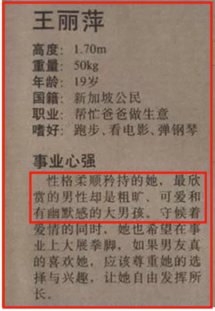 貌美嫩模王丽萍,在选秀台上昭告天下,说自己的梦中情人是个“粗犷、可爱和有幽默感的大男孩。”