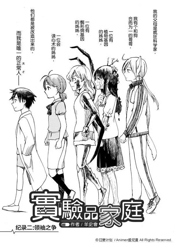 《实验品家庭》简介:身为天才少年的丹尼斯(的父母)在进行非法人体改造后被抓去吃猪排饭【误】于是家里只剩下我(丹尼斯)忠犬哥哥、腹黑(?)的蜘蛛姐姐,三无的读心术姐姐还有植物人的姐姐,是光合作用的植物人不是生病的植物人啦,这样的一家在失去父母之后将何去何从呢?
