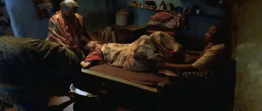 一个女人被抬进“产房”,而实际上这个房间不仅光线不足,卫生状况也堪忧,接生婆可能也没有什么医生资质。