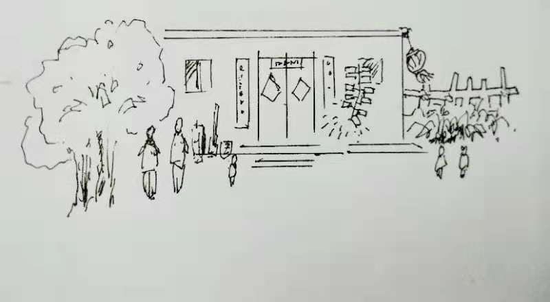 大燕撑着伞来到石桥边,观察了水的流速,试探了石桥的栏杆和水漫过桥面的深度,觉得通行没有问题,就把伞扔在通往石桥的石阶上,挽起本来就打湿了的裤子,亦步亦趋地通过了石桥。