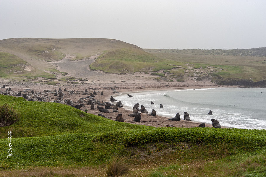 我们桑迪湾登陆,海滩边躺着有很多的海狮。。登陆后分成两个队,一队由新西兰特派员带领绕岛徒步约7-10公里;另一队沿着木栈道自由活动,走大约1公里的短线。大约有60多人选择了走长线,天下着雨,我和其他多数人选择了走短线。