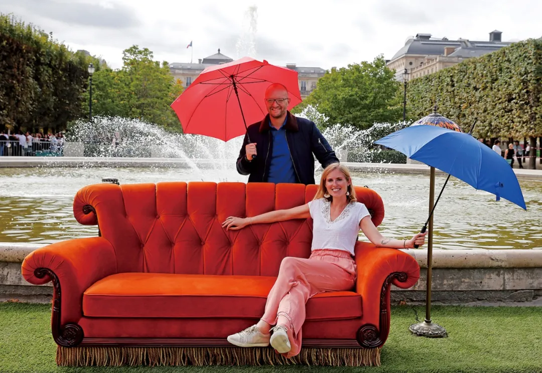 2019年9月12日,巴黎,当地摆放《老友记》中的同款沙发供粉丝合影,庆祝该剧开播25周年。/ chesnot, getty images