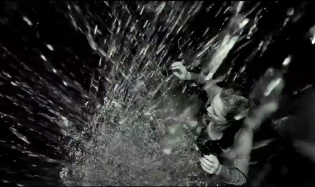 角落里还有一台电视,黑白雪花闪过之后,出现了一个困在水牢中的女人。