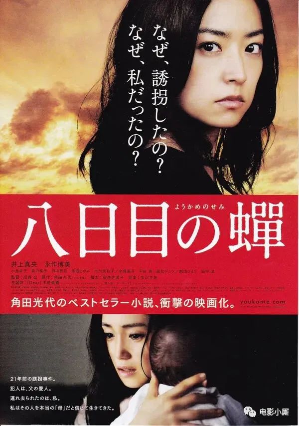 “八日蝉”——蝉短暂的生命会在它们破土之后的第七日消散,如果有一只蝉活到了第八日,那么会怎么样呢?电影在这个立意上讲述了一个让人落泪、让人爱的电影——《第八日的蝉》。