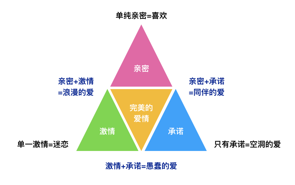 罗伯特·斯腾伯格在爱情三角形理论中是这么解释的: