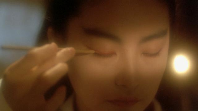 徐克把绝对主角从令狐冲换成了东方不败,是东方不败女性人格觉醒的过程,而令狐冲成催化剂,花瓶化了。出场时已经自宫练成葵花宝典,他还是男性配音,第一次与令狐冲相遇是作为武林高手惺惺相惜,红衣喝酒成了林青霞的代表性电影场面。