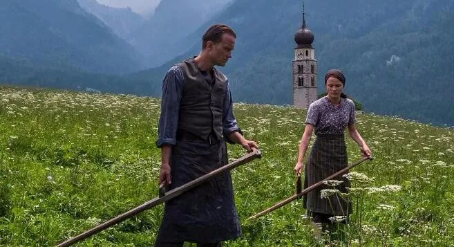 《隐秘的生活》的生活讲述了奥地利农民弗兰茨(奧古斯特·迪赫 饰)因在二战时期拒绝为纳粹德国而战,甚至拒绝宣誓效忠希特勒,而最终被判死刑的故事。影片长达173分钟,但故事却极为简单,你能看到的是,围绕弗兰茨的家人、以及村庄的邻居们,面对他的“拒绝”和“坚持”,在短短几年时间里,他们各自的态度和心理变化。轻故事,重心灵;弃叙事,凸主题,依然是马力克电影的不变主旨。