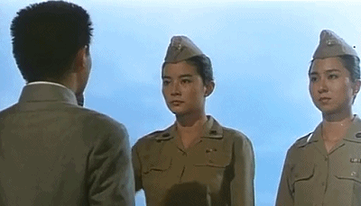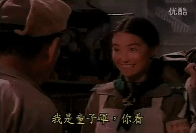 这样式儿的热血林青霞你见过吗?有趣的是,跟林青霞同期的女明星张艾嘉(当年也只有22岁)演另一名女童军——当杨惠敏不能被父亲理解而受到打骂时,张艾嘉演的女童军勇猛地站出来为她说话,热血激昂地说服身边逃避战乱的父老乡亲。最终杨父被说服,为军队贡献出自家的20袋大米。张艾嘉当年也算是文艺女神,与林青霞一起出现在这部热血的抗战片中特别激动人心。
