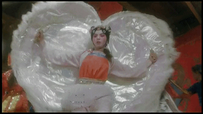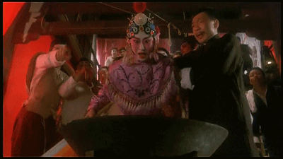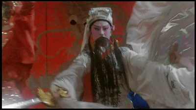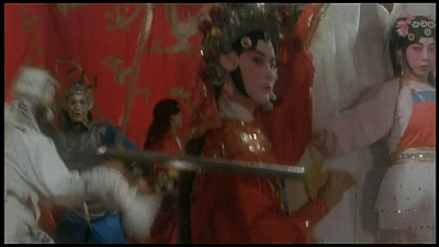 叶倩文的穆桂英造型耍帅 钟楚红的穆桂英扮相卖萌 叶倩文扮吕洞宾 林青霞扮何仙姑 钟楚红扮蚌精 三美戏装同框,左红中霞右文 必须献上一只胖虞姬~由秦沛反串青霞的曹云不是一直好命,最终父亲被奸人所害,她就也跟着受尽苦头——奸人把她当男人拷打,受尽虐待;最后一站也是被打得血肉模糊。青霞在片中身份虽是男装,但始终是个女儿身,但徐克简直就把她当男人对待啊!