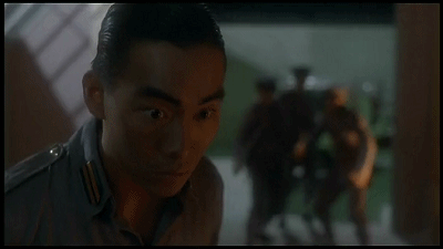 林青霞虽然仍旧保持着“瑶女郎”身形,但走进《八百壮士》之后却从里到外却变成了一名热血战士——在死人堆儿里摸爬滚打,不用替身在水里展现矫健泳姿,一对麻花辫子、一身女童军装与“瑶女郎”完全判若两人。