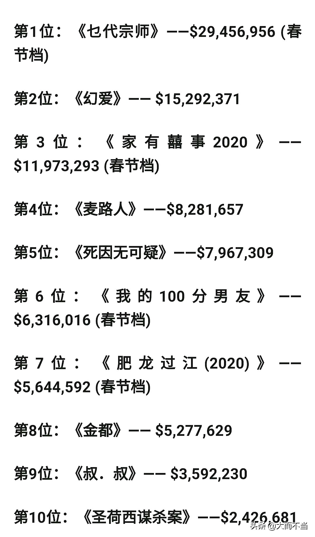这种票房放在最辉煌的90年代也就刚刚入围前10。