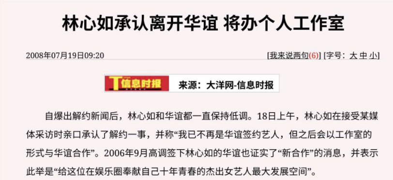 这一年,林心如告别琼瑶,签约华谊,成为李冰冰的同门师妹。