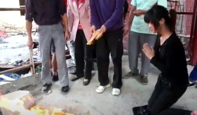 他们的婚礼还没有完成,但家属却坚持让新娘穿着婚纱离开。