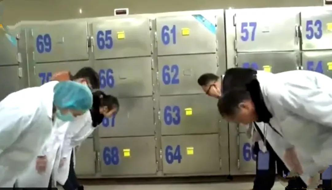 将遗体送进冷藏柜之后,杜威像往常一样组织同伴们排位站好,一二三喊过后,他们一齐深深鞠躬,向死者致以了最后的哀婉。