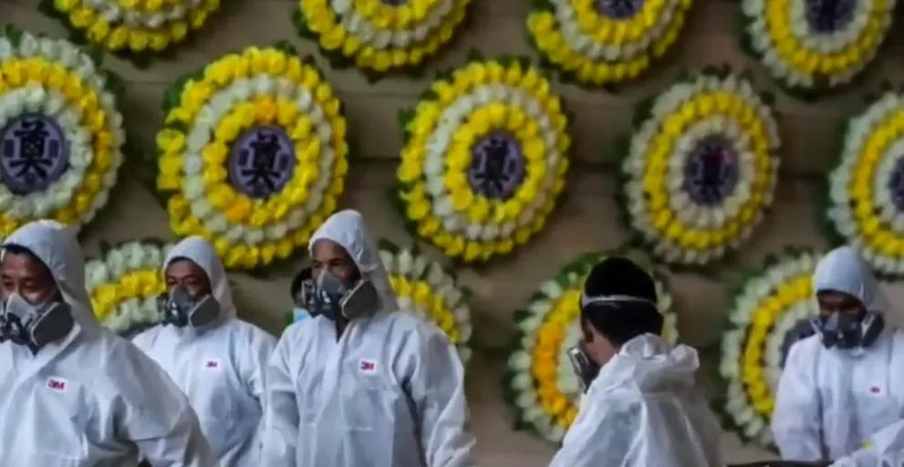 之后他们再被推向大大小小的告别厅,与亲人们进行最后的告别。