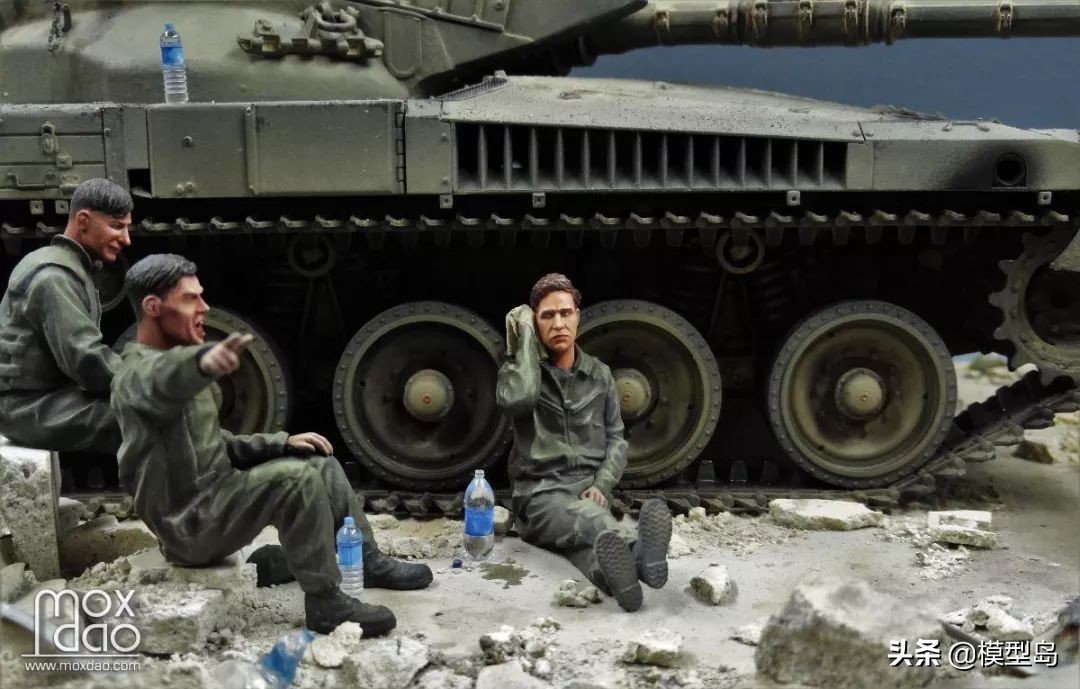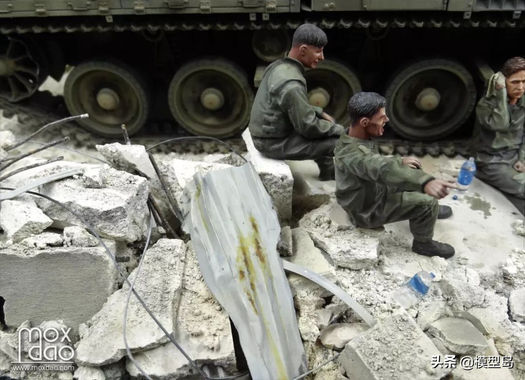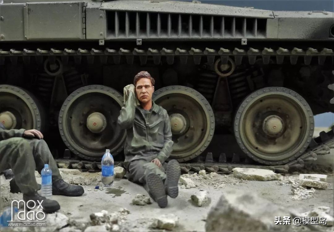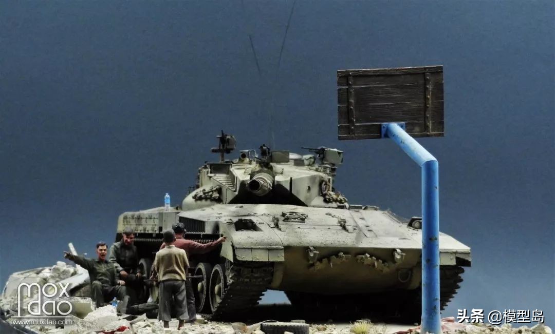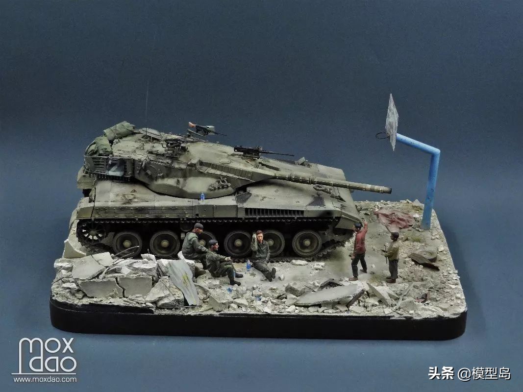 在做这辆梅卡瓦的过程中我一直在思考如何做一个场景,当初买梅卡瓦是被它以保护乘员安全为先的设计理念打动,我一贯不喜欢战斗的场面,所以我决定制作这个非战斗场面但又体现双方冲突的场景。